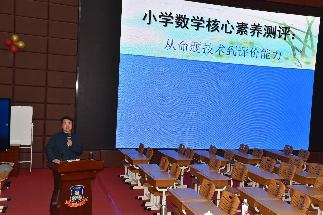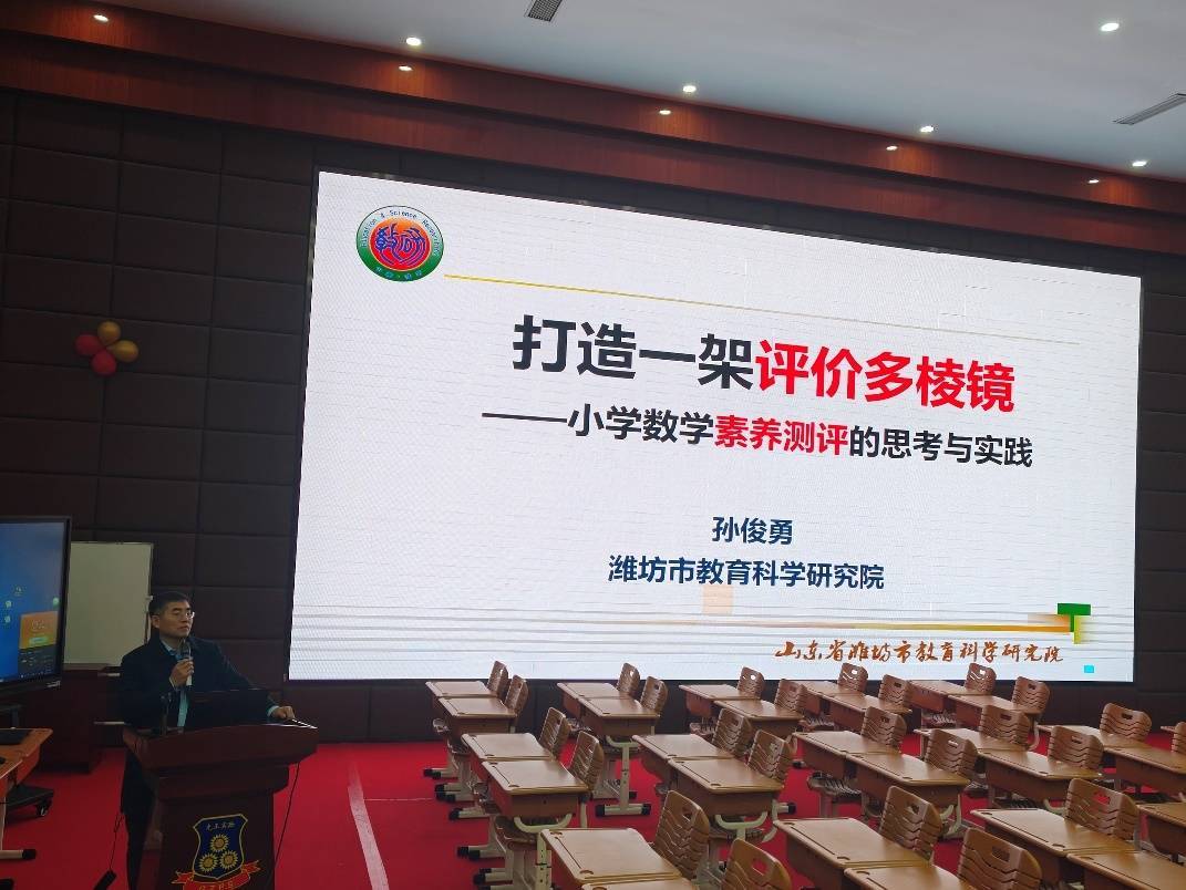 潍坊市教科院小学数学教研员孙俊勇作专题报告《打造一架评价多棱镜——小学数学素养测评的思考与实践》:
