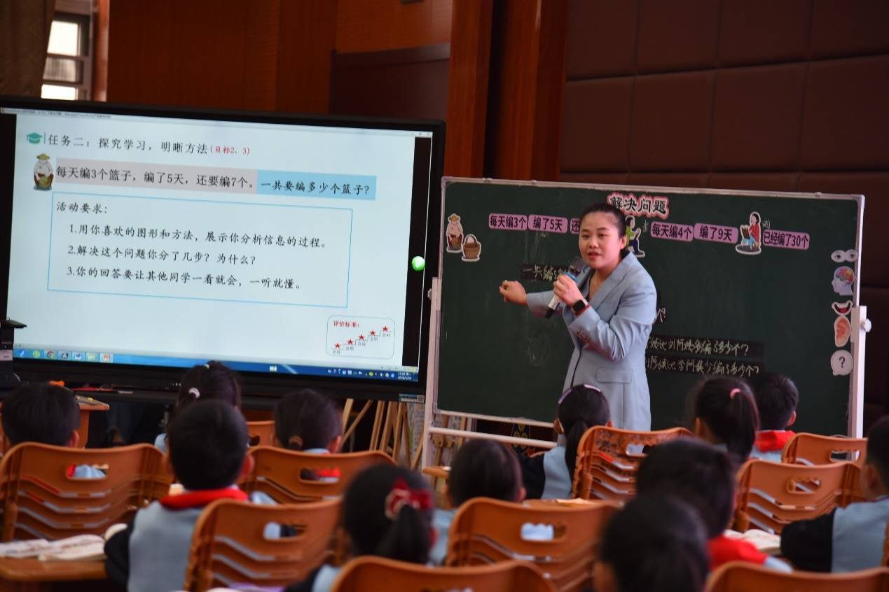课内教学突出“三会”。课堂教学是学生数学核心素养发展的主渠道。潍城区怡园路小学潘美宇老师执教二年级“解决问题”: