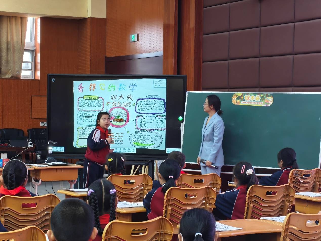 东夏小学韩飞飞老师引导二年级小学生,从“关于爬楼梯用时的困惑”入手,让学生利用课外时间,自主开展数学绘本阅读《锯木头——分段问题》,将绘本中“思想和方法”用来解决“爬楼梯用时”问题。